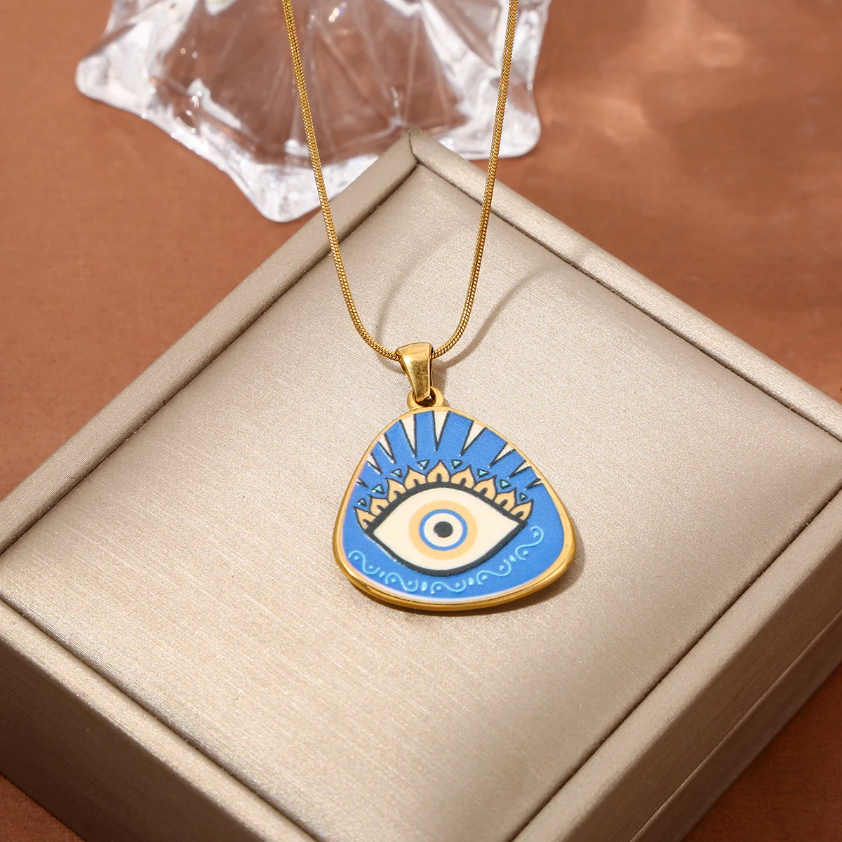 Cyberpunk Style Stainless Steel Evil Eye Gold-Plated Pendant