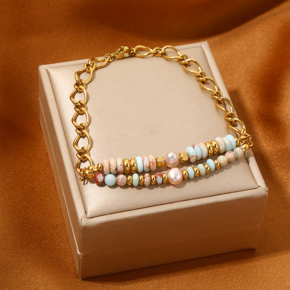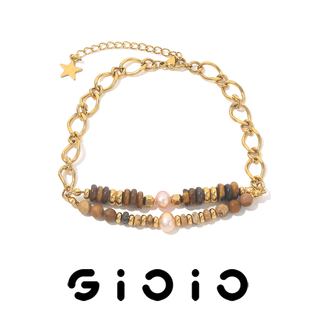 GIOIO Bohemian Style Natural Stone Imitation Pearl Stainless Steel Bracelet Fashionable Waterproof Bracelets Jewelry Accessories