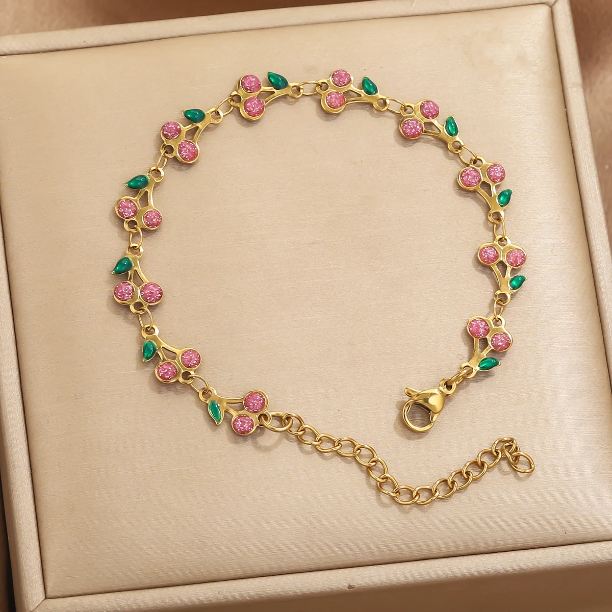 GIOIO Stainless Steel Cherry Shape Cuff Bracelet For Women Retro Bohemian Bangle Hot Style Exquisite Fashion Jewelry Gift