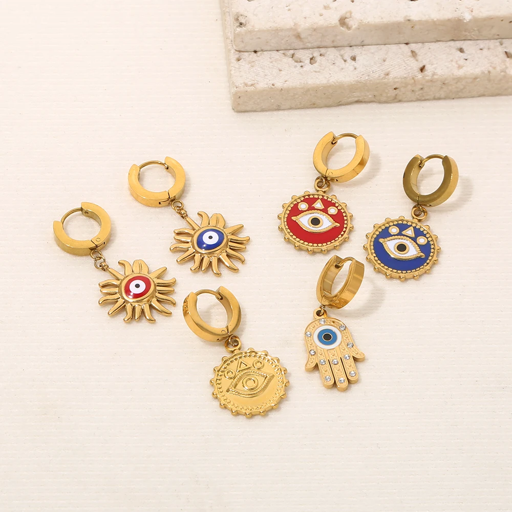 Turkish Evil Eye Earring Dangles Personalized Enamel Jewelry Stainless steel Earrings Fashion Simple Matching Jewelry
